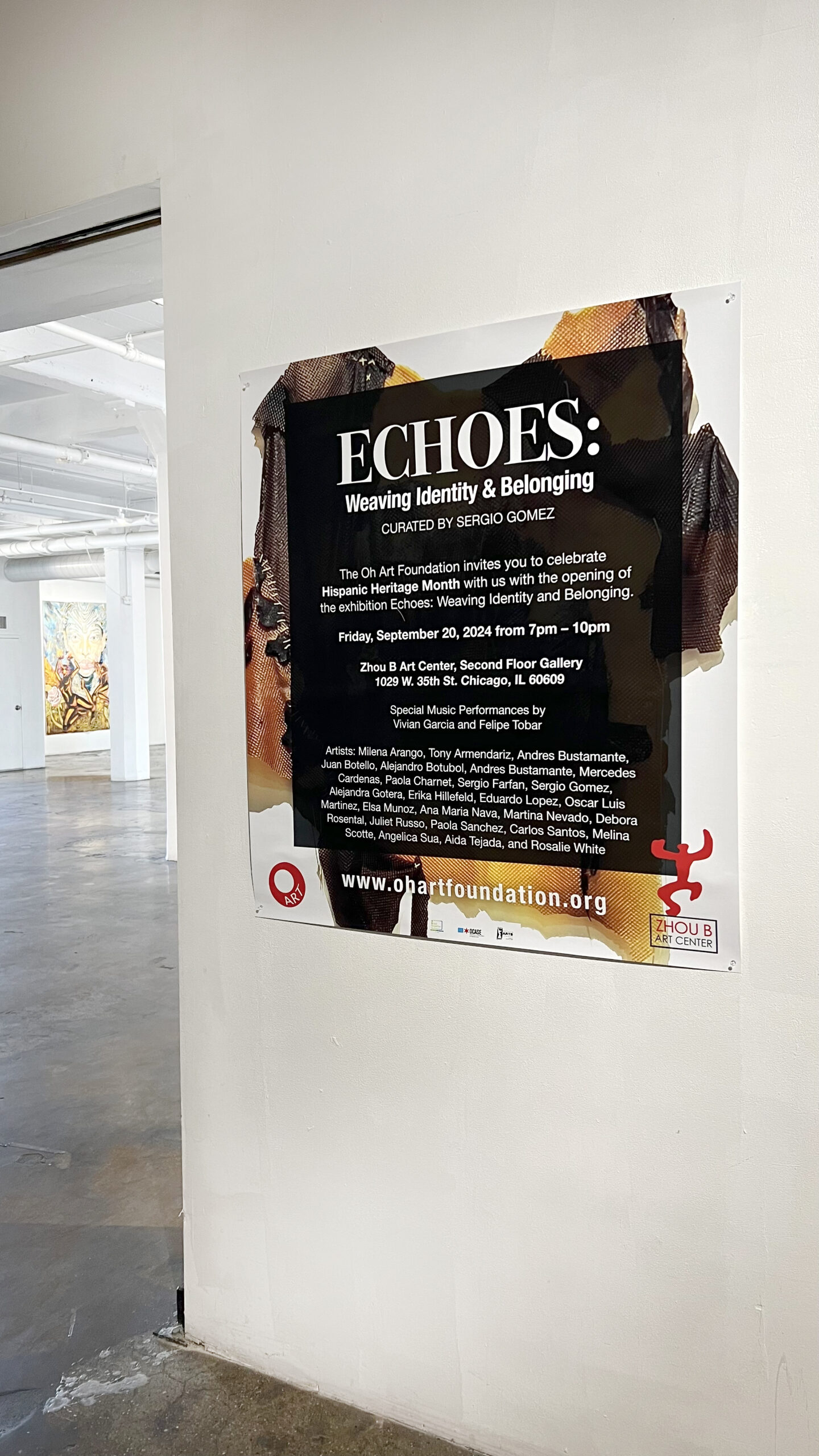 “Echoes: Weaving Identity and Belonging,” is a compelling exhibition curated by Sergio Gomez, celebrating Hispanic Heritage Month. This exhibition brings together contemporary artists of Latino heritage, showcasing a rich tapestry of works that explore themes of identity, belonging, connection, and identification.